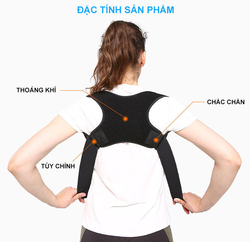 - Màu sắc: Đen Chất liệu: SBR 62%, Vải không dệt (Polypropylene) 18.5%, Polyester 12.5%, Spandex 7% Free Size: Có thể dễ dàng điều chỉnh kích cỡ Có những lỗ nhỏ li ti thoáng khí Với thiết kế mở sẽ phù hợp với mọi vóc dáng, phần dây đai có thể điều chỉnh vừa khít với mọi kích cỡ vai, lưng của bạn. Có nhiều lỗ nhỏ li ti trên đai chống gù lưng có tác dụng để thoát khí Để sản phẩm được phát huy công dụng tốt nhất, chúng tôi khuyên bạn nên sử dụng 2-4 tiếng mỗi ngày. Sản phẩm sẽ nhanh chóng phát huy được công dụng chỉ sau vài tuần sử dụng.