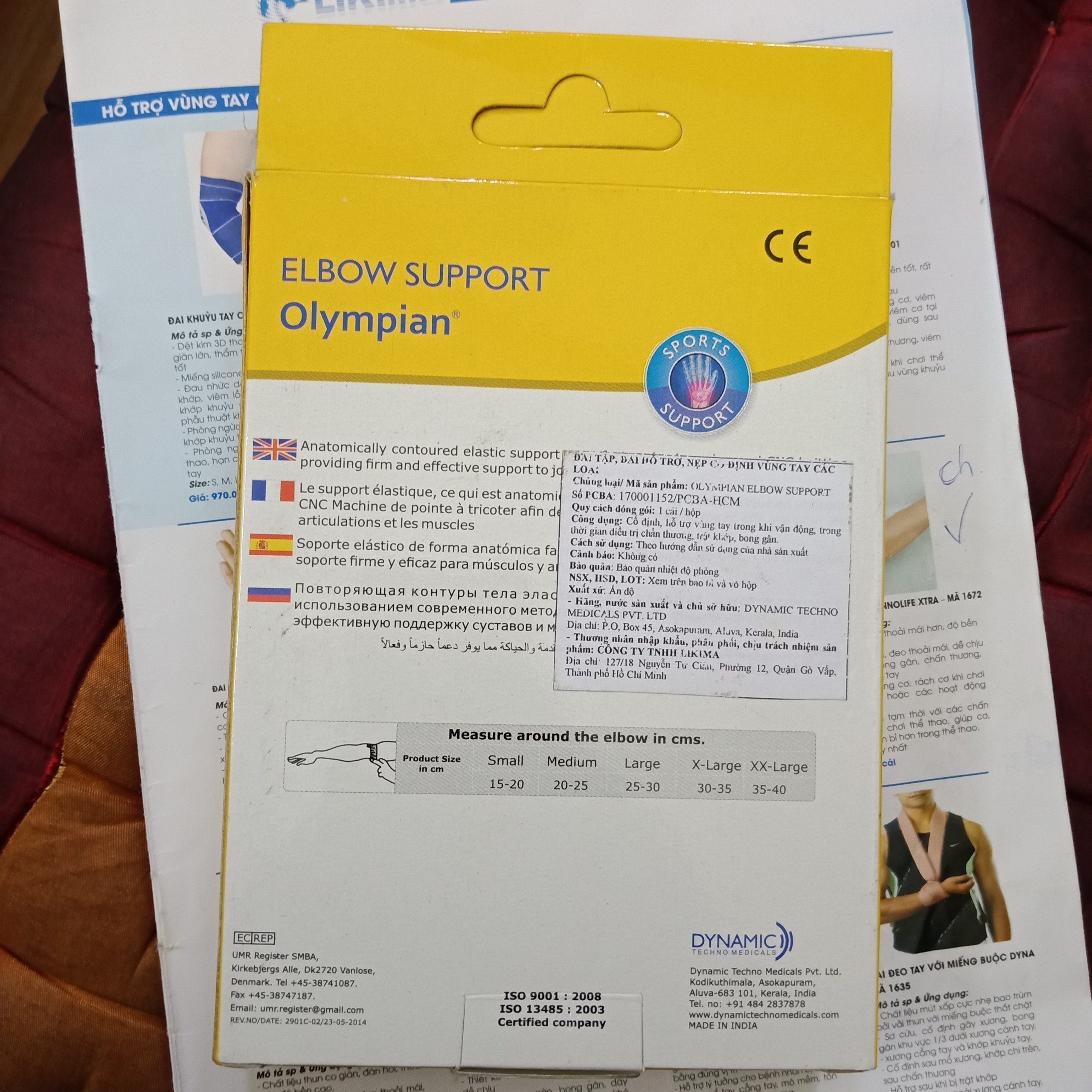 -Băng hỗ trợ khuỷu tay hiệu OLYMPIAN được sử dụng trong thể thao như cầu lông, tennis... giúp khuỷu tay bạn hoạt động linh hoạt, hạn chế căng cơ và đau vùng khuỷu tay.