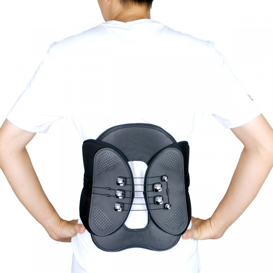 Được thiết kế với hai thanh nẹp cứng giúp chống đỡ cột sống thắt lưng tốt hơn, ngoài ra áo còn để hở vùng cột sống thắt lưng, giúp cho việc chăm sóc vết thương