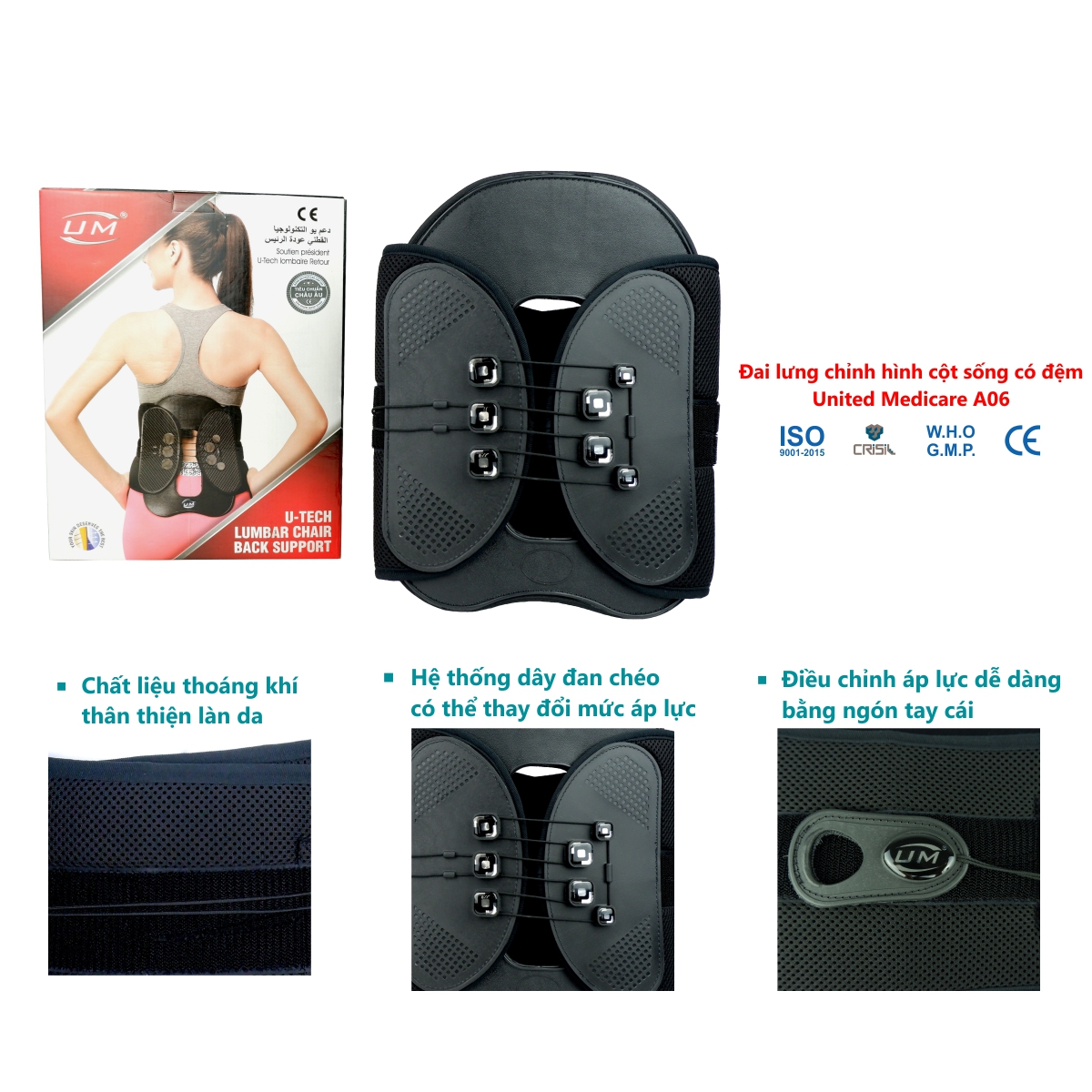 - Không ủi khô. THÔNG TIN THƯƠNG HIỆU United Medicare (UM) là nhà sản xuất hàng đầu các sản phẩm chỉnh hình và phục hồi chức năng trong khoảng thời gian 8 năm trở lại đây. Chúng tôi tự hào sở hữu nhà máy sản xuất hiện đại theo tiêu chuẩn ISO 9001:2015. Các đơn vị sản xuất của chúng tôi đã được thiết lập theo các thông số quốc tế và đáp ứng các tiêu chuẩn WHO-GMP. Tất cả sản phẩm đều được sản xuất theo tiêu chuẩn Châu Âu và có đánh dấu CE. Sản phẩm của UM hiện đang có mặt tại Vương quốc Anh, Hoa Kỳ, Canada, UAE, Kenya, Malaysia, Mauritus, Nepal, Châu Phi...