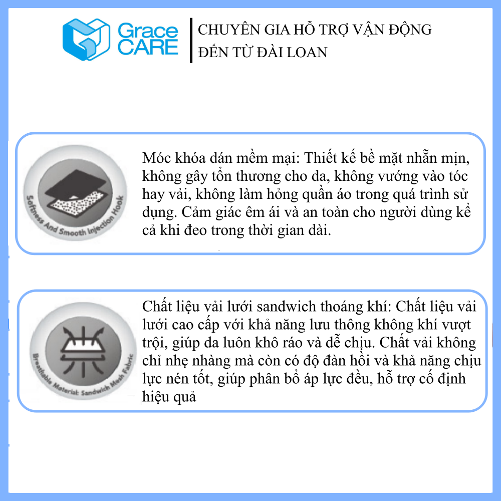 Thương hiệu: Grace Care - Nhà cung cấp chuyên nghiệp các sản phẩm chỉnh hình, bảo hộ thể thao tại Đài Loan. Sản xuất: Đài Loan Sản phẩm đạt tiêu chuẩn y tế ISO 13485