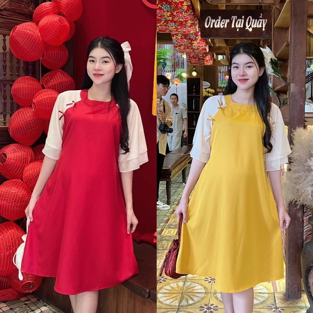 ÔNG TIN SẢN PHẨM: Đầm bầu mặc Tết, dự Tiệc thiết kế kiểu Áo dài cách tân xinh xắn, thanh lịch, sang trọng. Chất vải cotton lạnh mềm mịn, nhẹ mát, thấm hút mồ hôi.