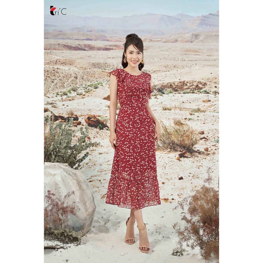 ✨Đầm hoa nhí, bèo ngực, bèo gấu Tri'C Luxury A23121 Đỏ đô