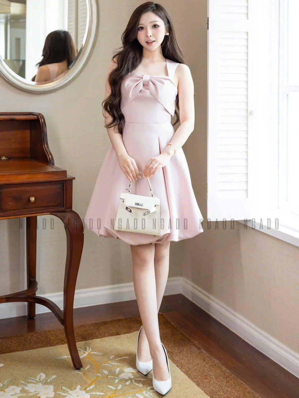 ✨Đầm hồng cổ phối nơ NGADO , đầm ngắn , đầm dự tiệc , dạo phố