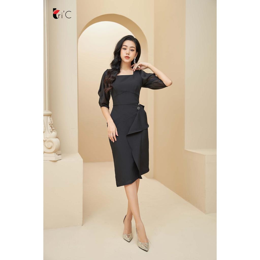 ✨Đầm ôm bèo lệch đính cúc ngọc cổ vuông Tri'C Luxury A21620