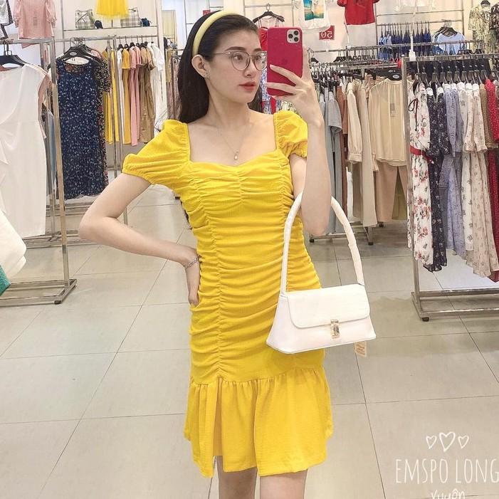 ✨Đầm ôm cổ vuông, đuôi cá, rúm chun dọc thân Emspo DS4079