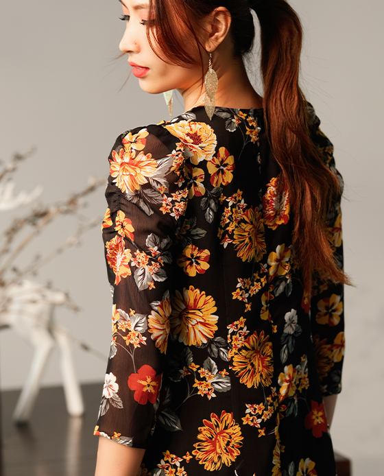 Chất: cotton lụa phối tay voan Màu: đen Kiểu dáng: đầm ôm, cổ vest, tay voan dài càu nút cổ tay, xẻ tà trước 2 bên, kèm nịt rời, dây kéo sau lưng Size: M