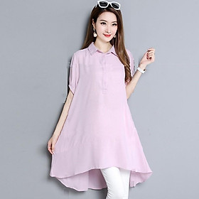Đầm Sơ Mi Cotton, chất liệu cotton mềm mại, mỏng nhẹ. Phần trước ngực đính hạt tạo hình lá độc đáo. Mặc phối với quần short hoặc legging bên trong. Phom suông. Dài đầm 100cm