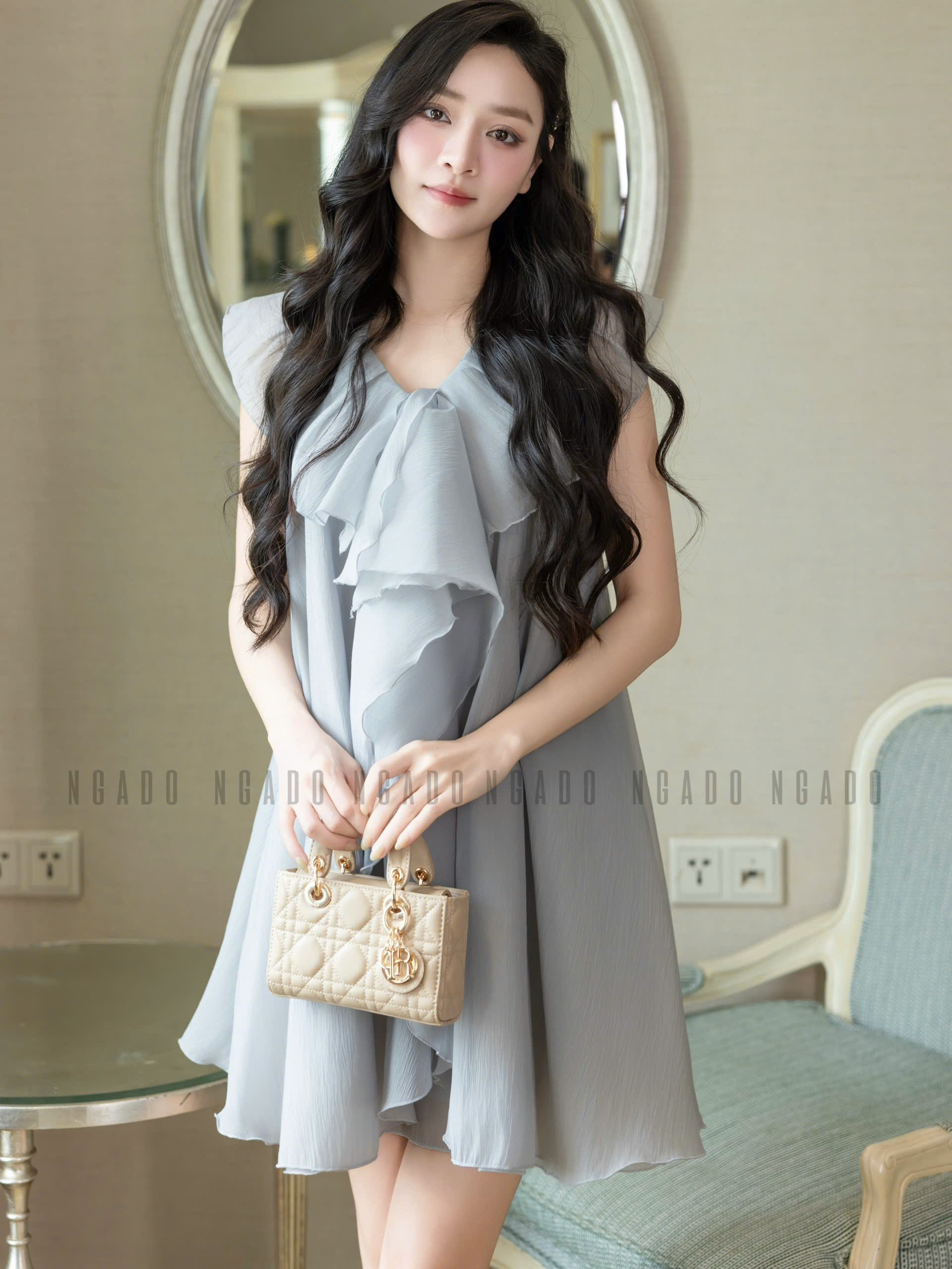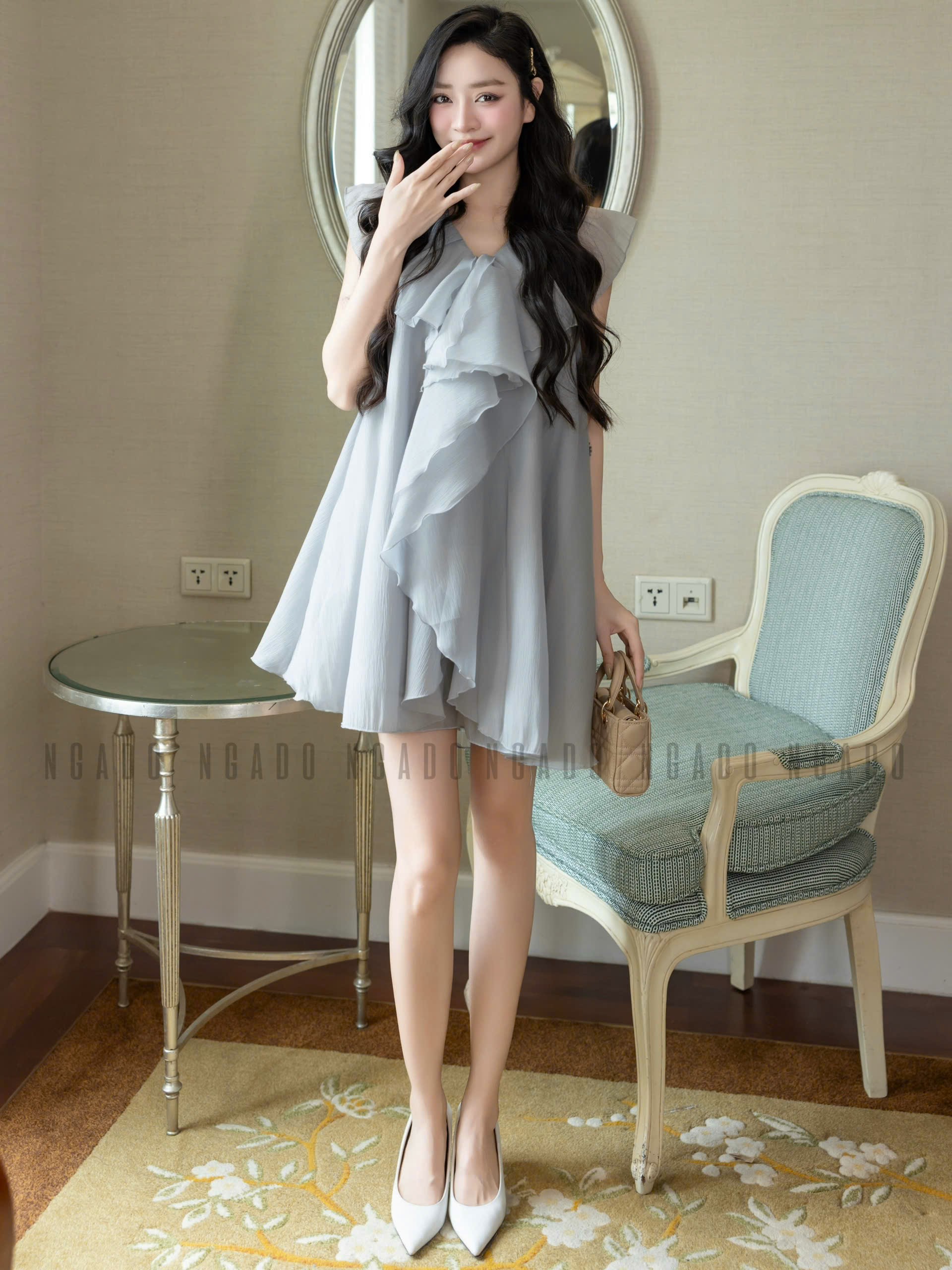✨Đầm voan xám phối bèo NGADO , đầm voan , đầm kiểu