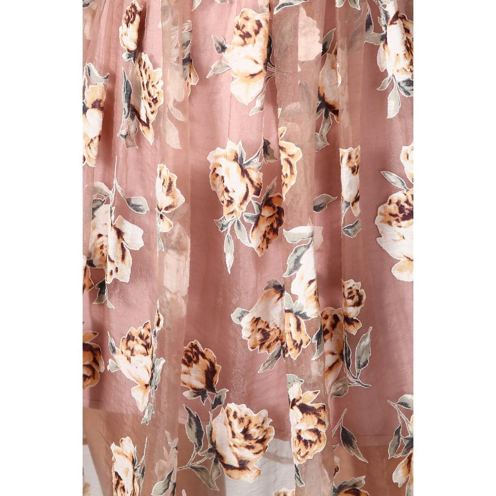 ✨Đầm xòe hoa Tri'C Luxury kê ren phủ lưới Hồng đỗ A17820