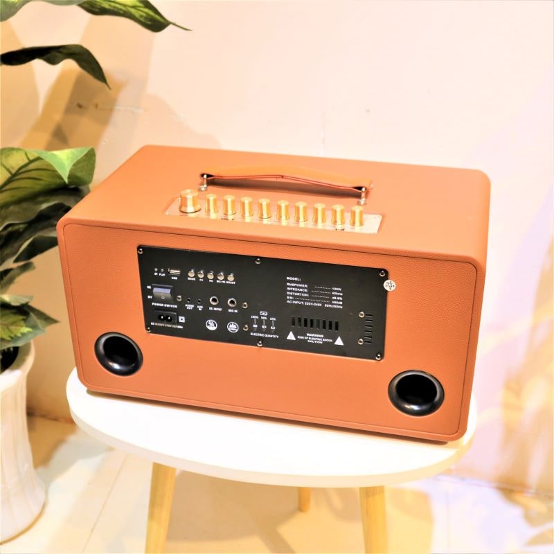 _Nguồn DC 12V bat in _ Bass 2T x 2, Treble x 2, mid x 2 _ Sử dụng bo CLASS D _Hỗ trợ USB, HDMI, Bluetooth, guitar in, mic in _Phụ kiện 2 mic