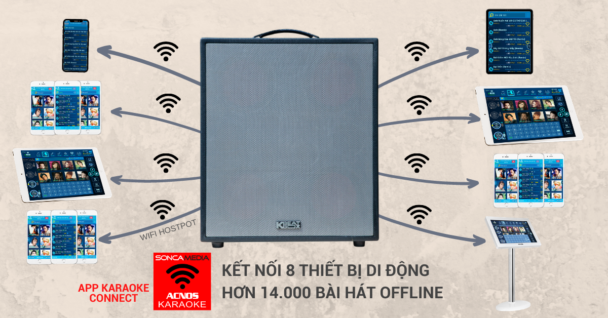 - Kết nối tối đa 8 thiết bị di động qua app Karaoke Connect