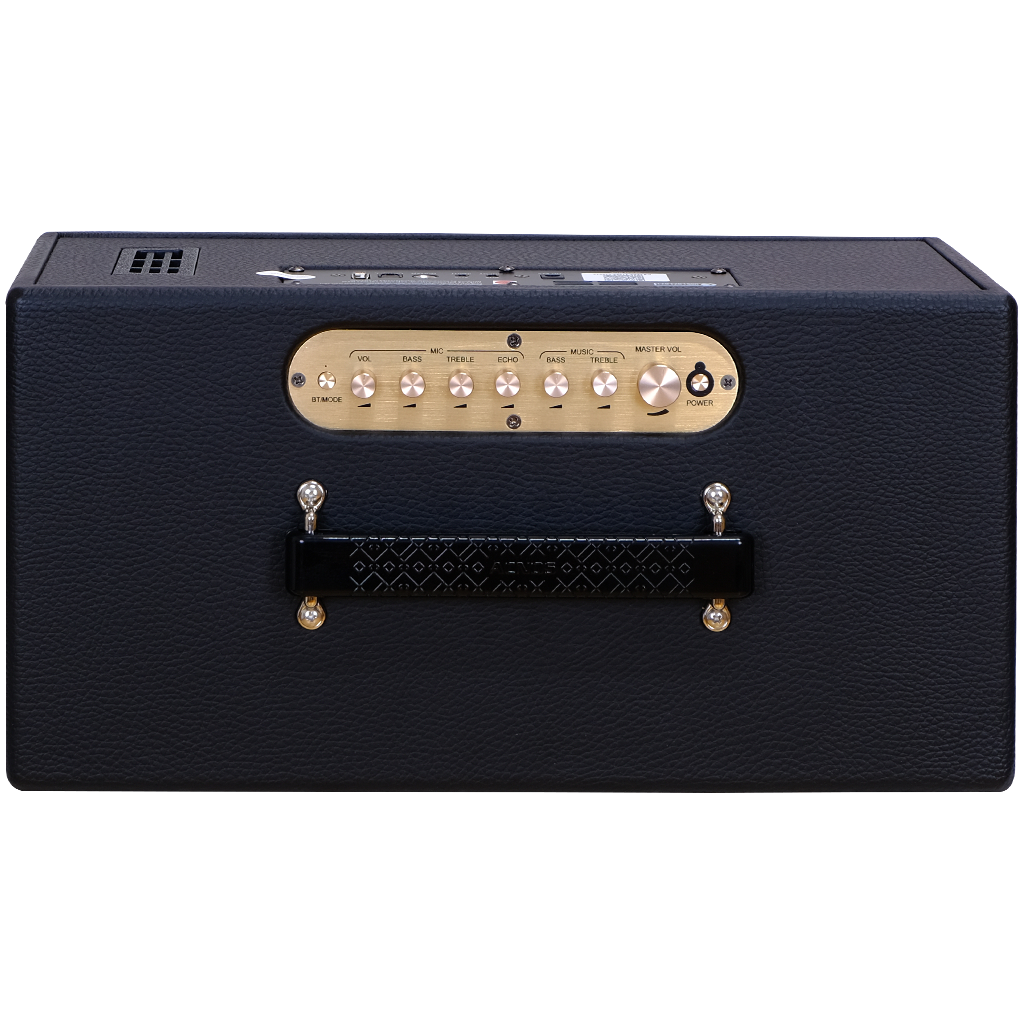_Nguồn DC 12V bat in _ Bass 2T x 2, Treble x 10 _ Sử dụng bo CLASS D _Hỗ trợ USB, HDMI, Bluetooth, guitar in, mic in _Phụ kiện 2 mic cầm tay không