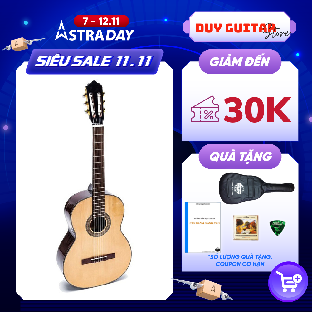 Đàn guitar classic full size gỗ hồng đào solid DC300 Duy Guitar Store