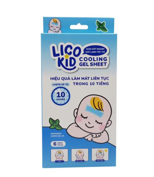 DÁN HẠ SỐT LICO KID HƯƠNG BẠC HÀ Miếng dán chườm lạnh, hạ sốt nhanh Cooling Sheet với ưu điểm giảm sốt nhanh chóng, kéo dài đến 10 giờ và tuyệt đối an toàn khi