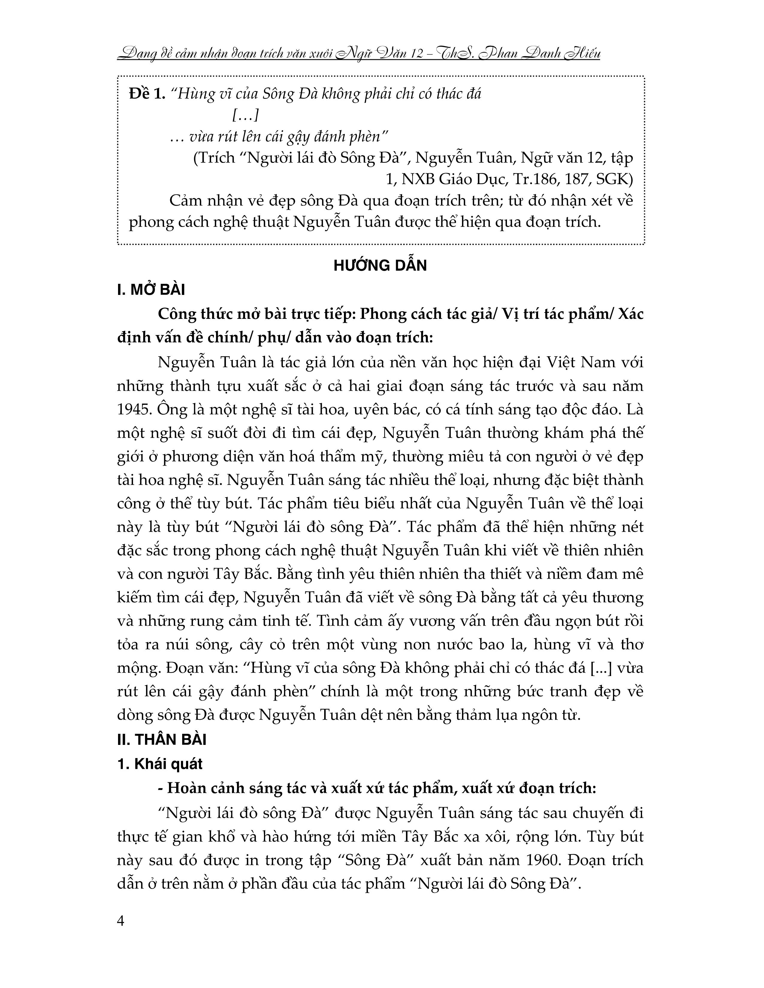 Giới thiệu sách DẠNG ĐỀ CẢM NHẬN ĐOẠN TRÍCH VĂN XUÔI - NGỮ VĂN 12 | Văn học Online