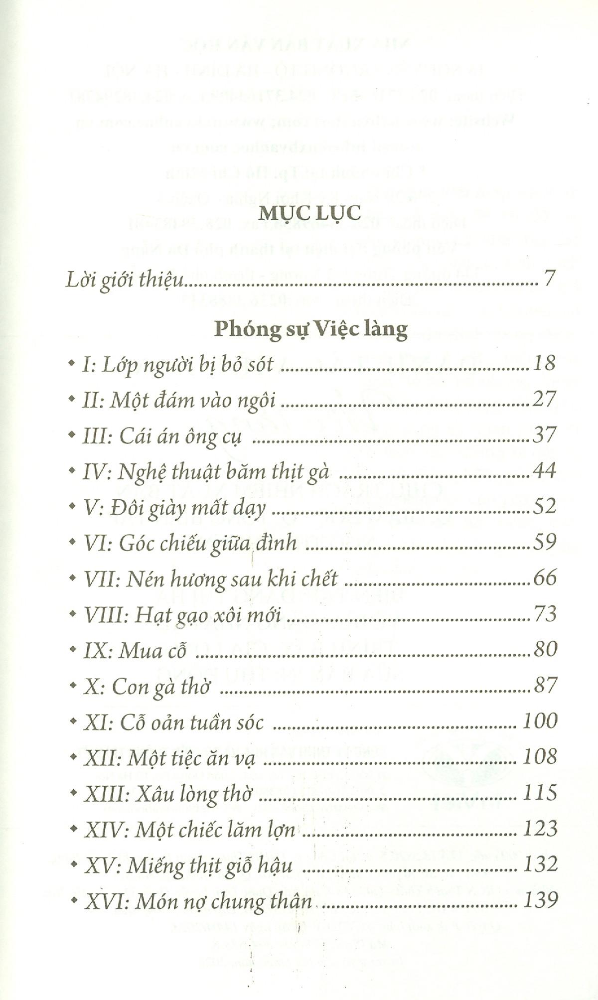 Trong tập phóng sự Việc làng, làng Việt Nam cổ xưa đã biến thành một triều đình phong kiến thu nhỏ, lợi dụng sự mê tín của dân chúng, thực dân phong kiến đã giở mọi trò lừa bịp nhằm thực hiện chính sách ngu dân, bóc lột.