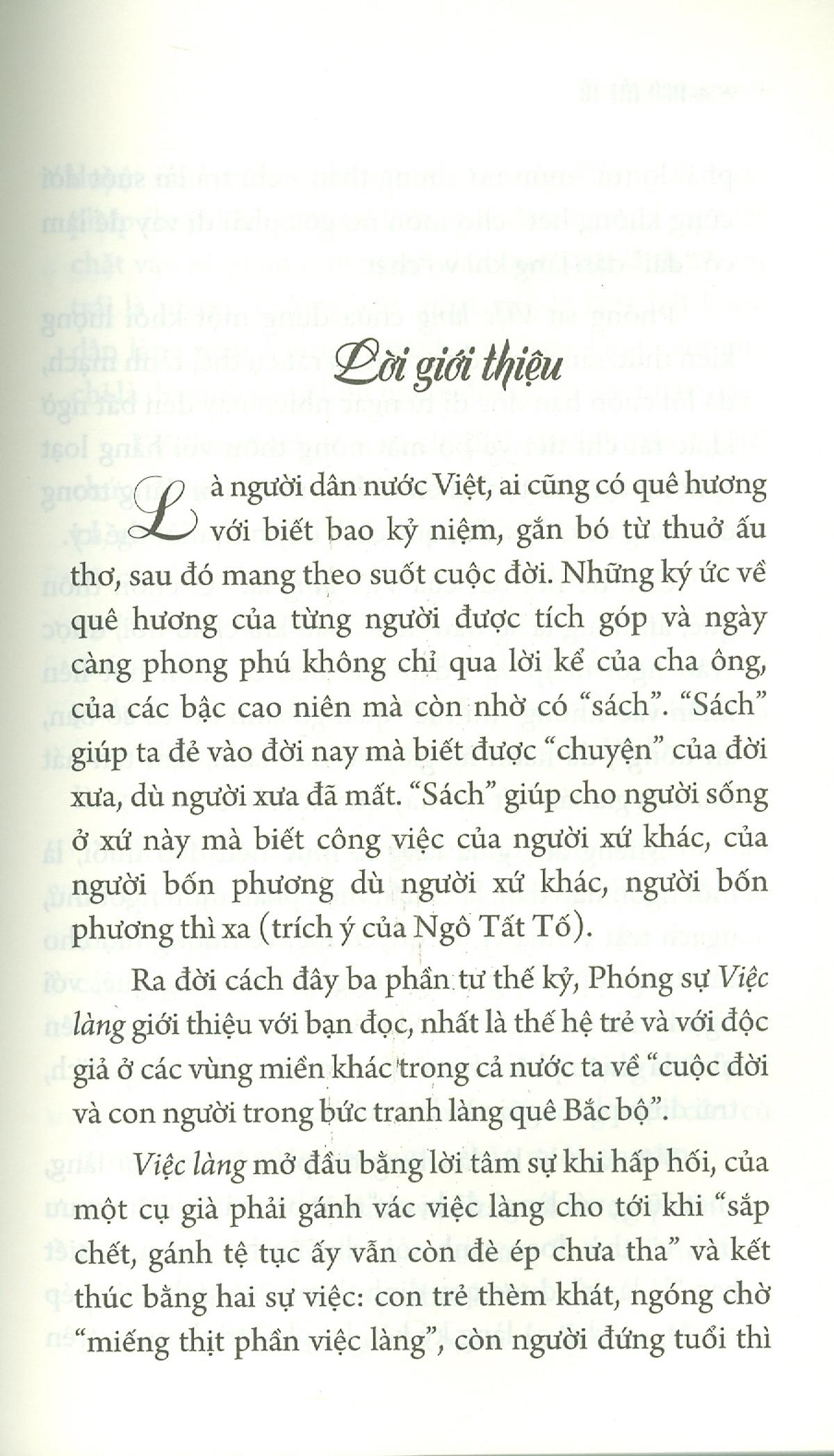 Phóng sự việc làng chứa đựng một khối lượng kiến thức sâu rộng, được ghi lại rất cụ thể, rành mạch, đã lôi cuốn bạn đọc đi từ ngạc nhiên này đến bất ngờ khác rất chi tiết về bộ mặt nông thôn với hàng loạt phong tục, hủ tục diễn ra liên miên dai dẳng trong đời sống và xã hội dân quê cách đây non một thế kỷ.