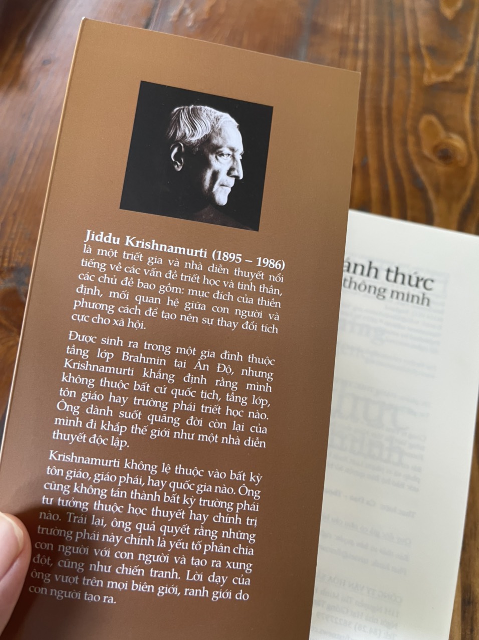 Đánh Thức Trí Thông Minh cuốn sách ghi lại những bài giảng và bài nói chuyện của Krishnamurti trên khắp thế giới, giới thiệu về tư tưởng của triết gia vĩ đại này. Trong các bài nói chuyện này, Krishnamurti bàn về rất nhiều vấn đề liên quan đến cuộc sống như nỗi sợ hãi, xung đột, bạo lực, trải nghiệm tôn giáo, trí thông minh, hiểu biết chính mình, ý thức và vô thức,… thông qua “trí thông minh” là ý niệm xuyên suốt. Ngoài các bài nói chuyện với công chúng, ông còn đối thoại với các giáo sư, các nhà tôn giáo nổi tiếng thế giới. Đây là cuốn sách không thể thiếu dành cho tất cả những ai thực sự nghiêm túc trên con đường tìm kiếm hiểu biết tâm linh thông qua những lời dạy đầy minh triết.
