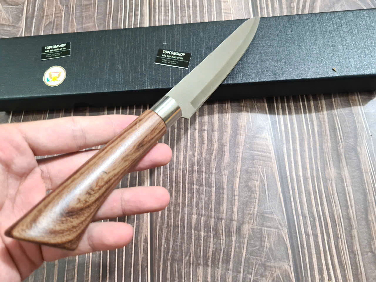 Dao gọt nhỏ vừa vặn với tay cầm. Sử dụng đa năng, phù hợp cho việc cắt và gọt hoa quả, trái cây, lọc cá và có thể sử dụng nó trực tiếp trên bàn ăn. Toàn