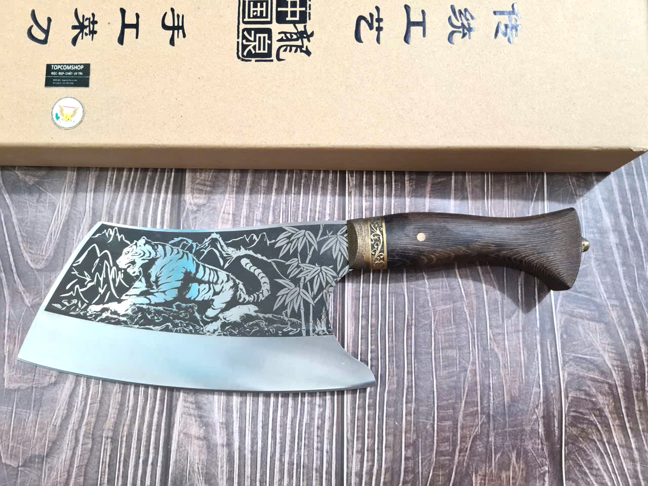 Dao Phúc Sen Chặt Xương Cán Cẩm Khâu Đồng - Kích thước: lưỡi: 24cm, cán: 13cm, rộng: 10cm, dầy: 0,5, trọng lượng: 700g - 900g - Chức năng: sử dụng chuyên chặt xương ống, xưởng