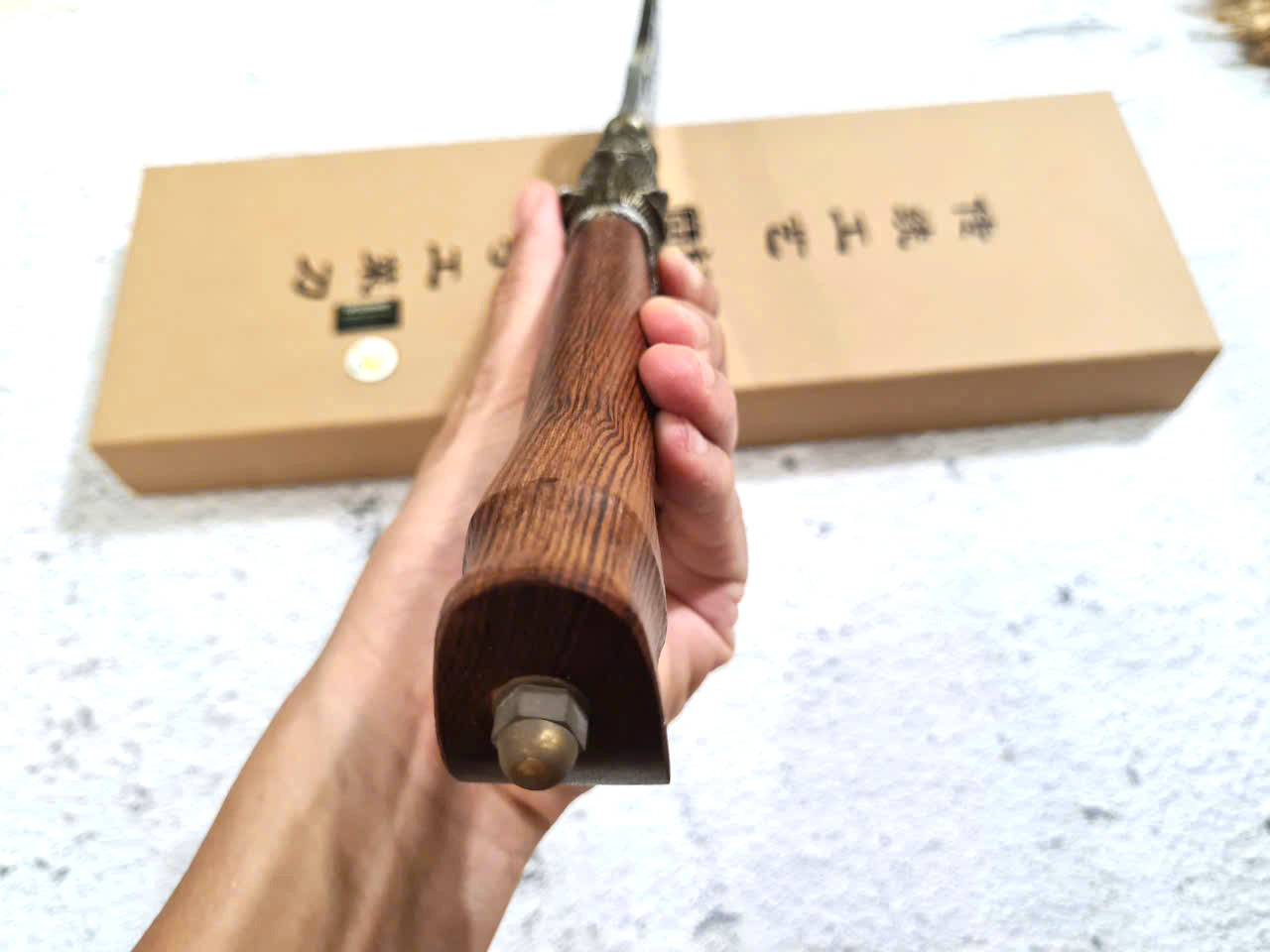 - DAO TR12 : Chiều dài TỔNG: 45cm Chiều dài lưỡi: 24.5cm Chiều rộng lưỡi: 7.5cm, Độ dày lưỡi: 6mm Trọng lượng: 1kg chất liệu lưỡi : 7Cr17MOV (thép 7 crom 17 molypden vanadi) Chất liệu tay cầm: gỗ cẩm lai, phụ kiện khâu đầu hổ và chuôi bằng đồng