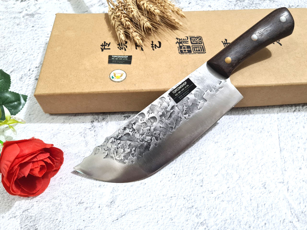 Tên sản phẩm: Dao Phúc Sen, Dao Thái Kiểu 03 Cán Gỗ Cẩm - Chức năng: chuyên thái thịt, rau củ - Chất liệu: 100% thép nhíp ô tô được lựa chọn và kiểm duyệt