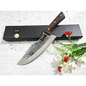-THÔNG TIN SẢN PHẨM: Chiều dài tổng thể: 29.5cm, Chiều dài lưỡi: 19.5cm ,Chiều rộng lưỡi: 5cm Độ dày: 2.5MM, CHẤT liệu lưỡi: 5Cr15MOV (thép 5 crom 15 molypden vanadi) Chất liệu CÁN: gỗ Cánh gà NẶNG : 2.5 lạng Mặt D dập chìm hoa văn rất đẹp
