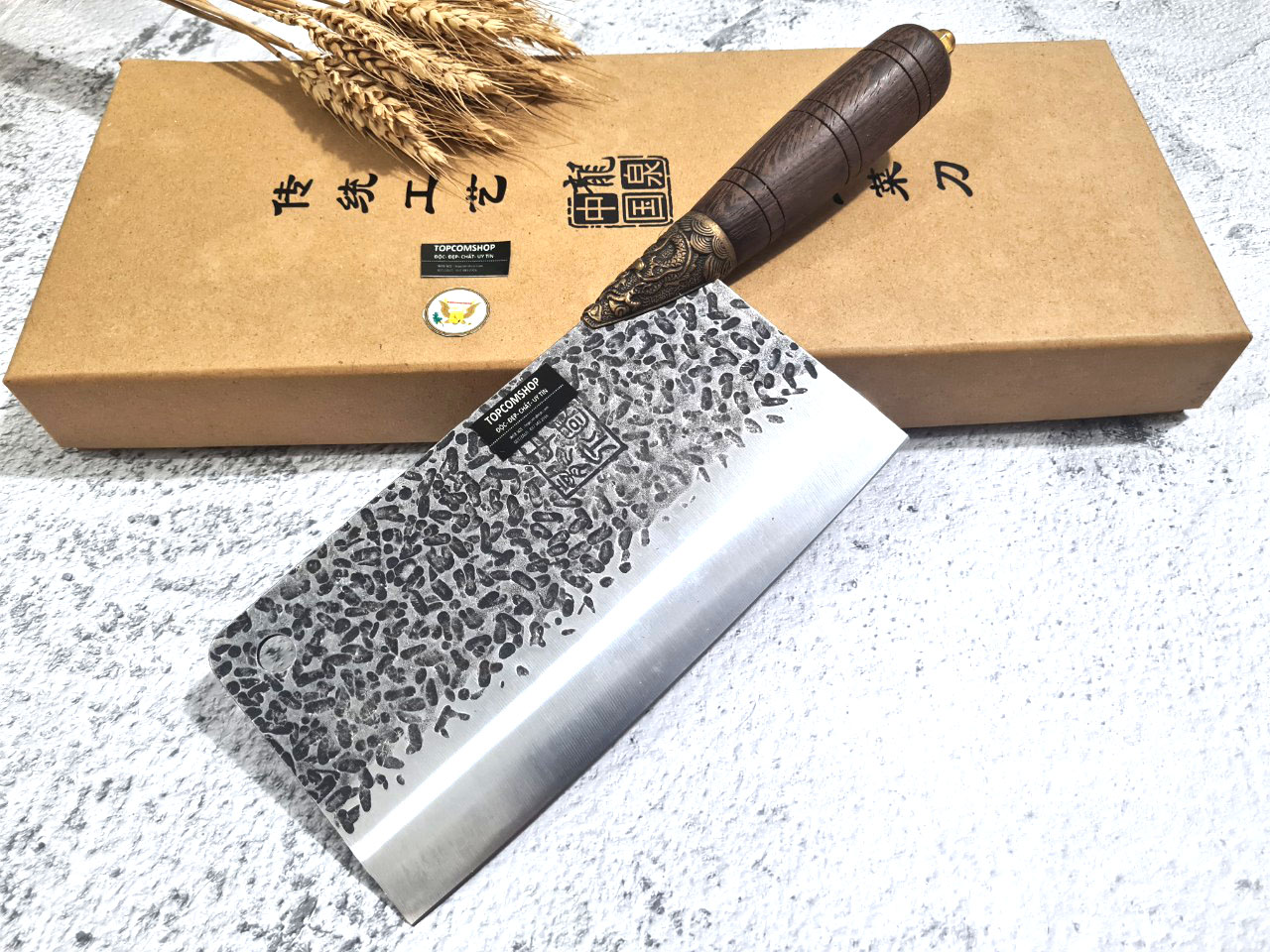 Dao Phúc Sen dao Chặt Xương Mới Cán Cẩm Khâu Đồng N10D - Kích thước: lưỡi: 22cm, cán: 13cm, rộng: 10cm, dầy: 0,5, trọng lượng: 700g - 900g - Chức năng: sử dụng chuyên chặt