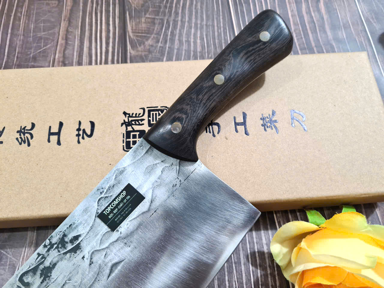 THÔNG TIN SẢN PHẨM ều dài TỔNG: 32cm Chiều dài lưỡi: 20cm Chiều rộng lưỡi: 12cm, Độ dày lưỡi: 2.5mm Trọng lượng: 4.5 lạng chất liệu lưỡi : 5Cr15MOV (thép 5 crom 15 molypden vanadi) Chất liệu tay cầm: gỗ cánh gà