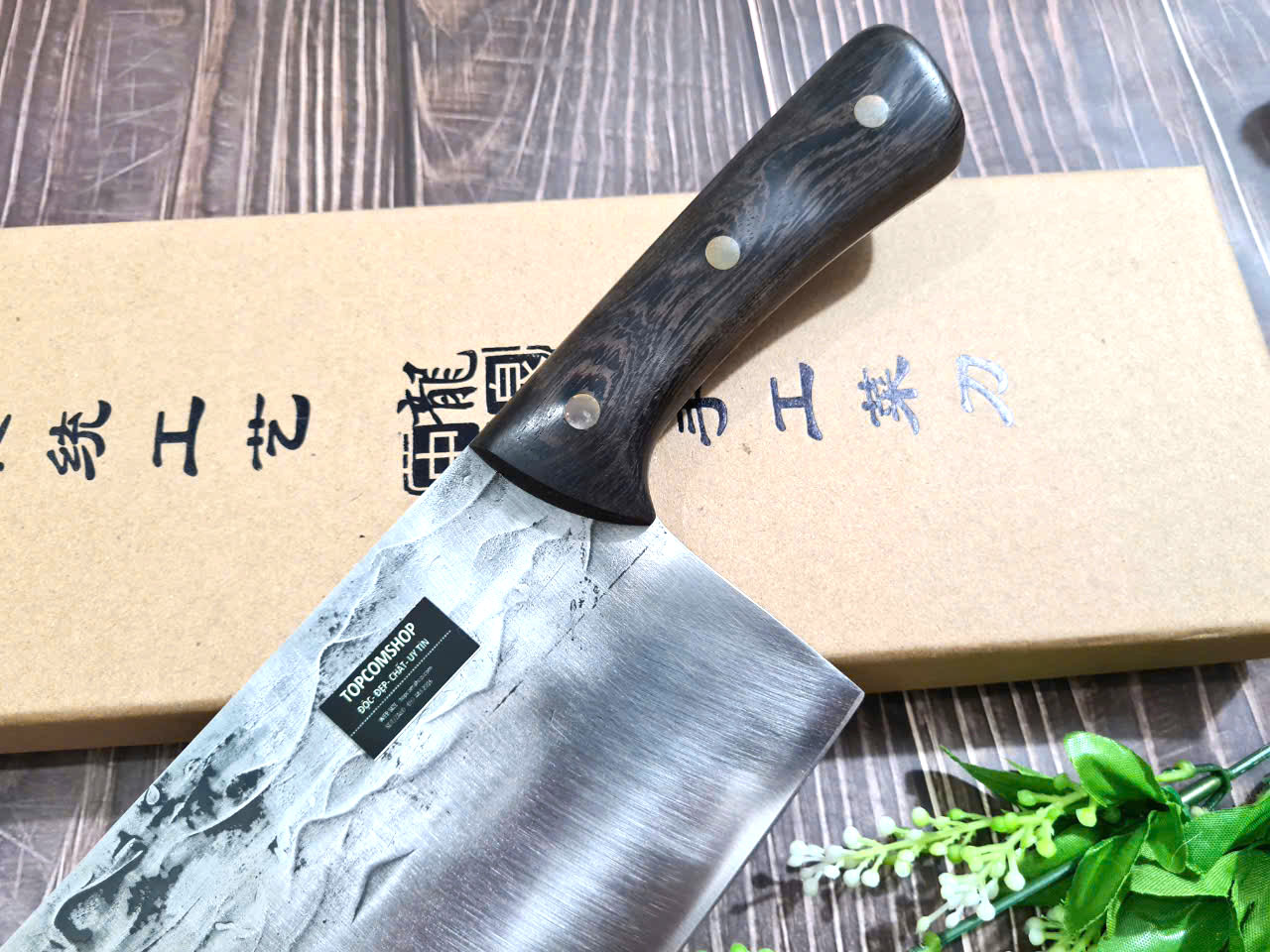THÔNG TIN SẢN PHẨM ều dài TỔNG: 32cm Chiều dài lưỡi: 20cm Chiều rộng lưỡi: 12cm, Độ dày lưỡi: 2.5mm Trọng lượng: 4.5 lạng chất liệu lưỡi : 5Cr15MOV (thép 5 crom 15 molypden vanadi) Chất liệu tay cầm: gỗ cánh gà