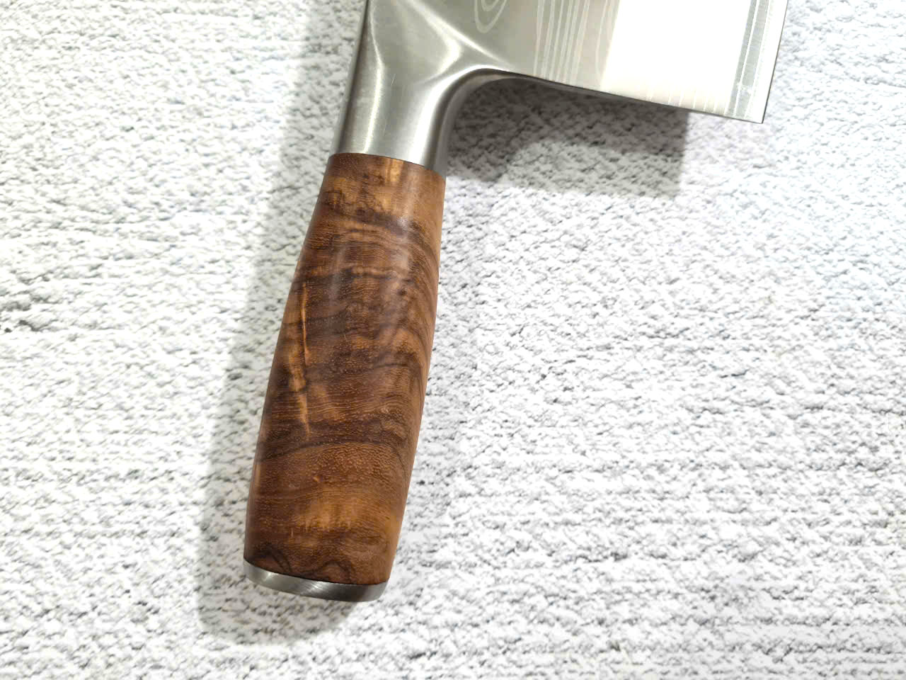 - Chức năng: Chặt xương ống, chân giò, trâu bò - Kích thước: Lưỡi: 22cm, cán: 10cm, rộng: 10cm, dầy: 5ly, trọng lượng: 800g - Cán : Gỗ mun, Khâu đồng đỏ , chốt đinh