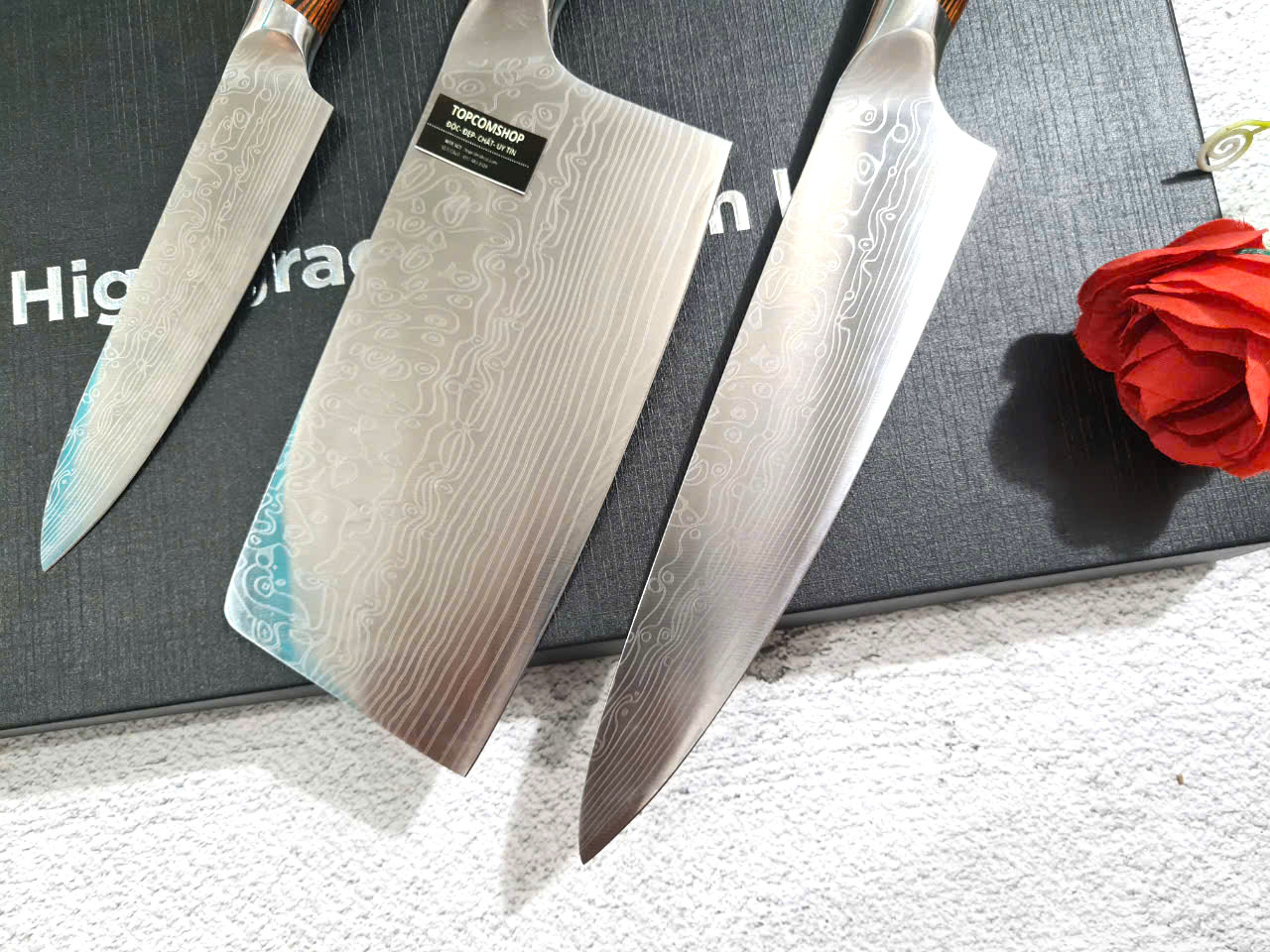 ✨DAO - BỘ 3 DAO BẾP NHẬT BẢN THÉP DAMASCUS MÃ A1 DT2 nt topcomshop vn