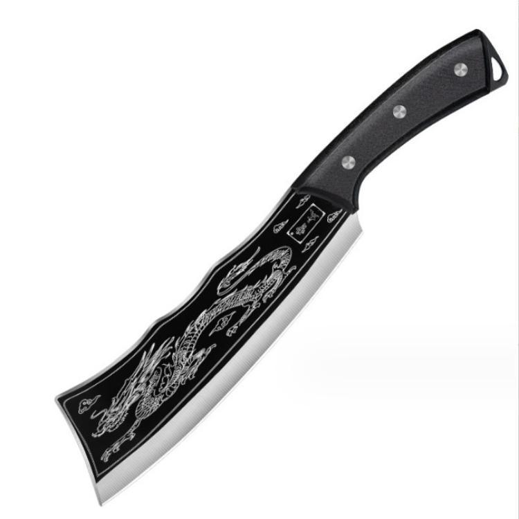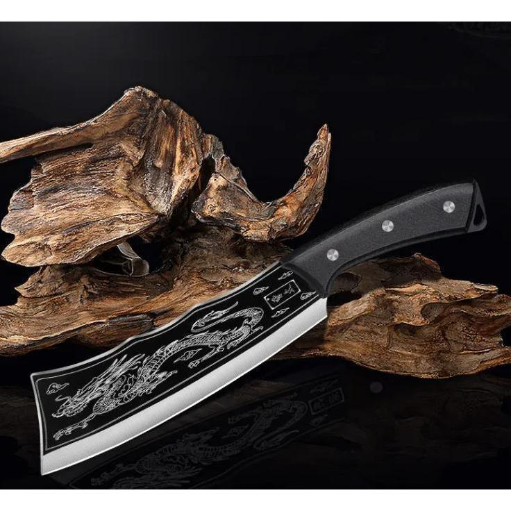 ✨Dao Chặt Thái Hắc Long Chất Liệu Thép Mangan Khắc Laser Họa Tiết Vân Rồng 33cm Kèm Bao Da