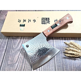 - Chức năng: Chặt xương ống, chân giò, trâu bò - Kích thước: Lưỡi: 22cm, cán: 10cm, rộng: 10cm, dầy: 5ly, trọng lượng: 800g - Cán : Gỗ mun, Khâu đồng đỏ , chốt đinh