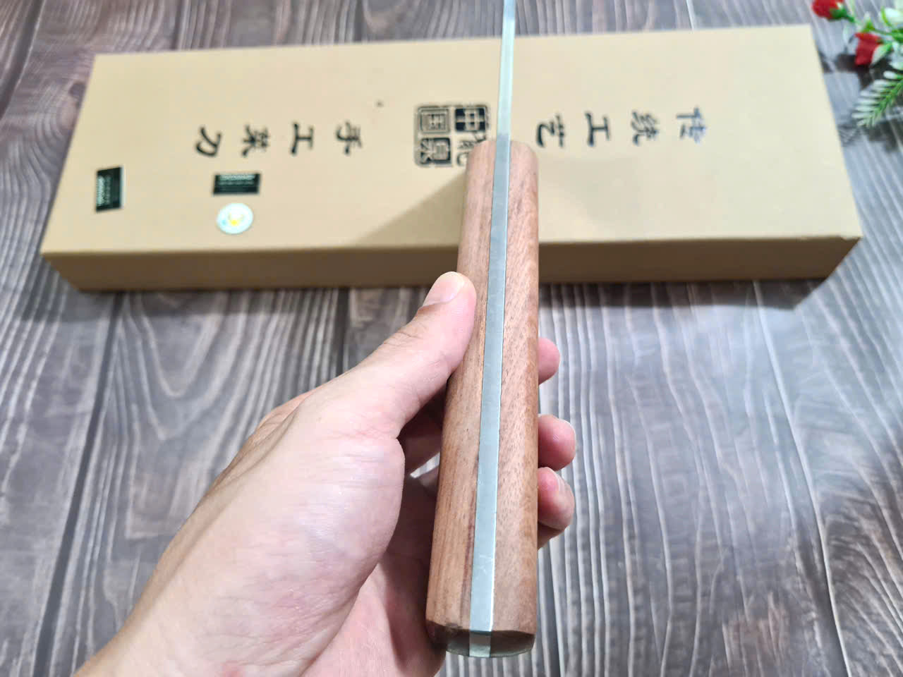 - Chức năng: chuyên chặt thái cá, chặt gà, lọ - Kích thước: Lưỡi: 26cm, cán: 12,5cm, rộng: 6,5cm, dầy: 4ly, trọng lượng: 480g - Cán : Gỗ mun , Khâu và chốt đồng đỏ