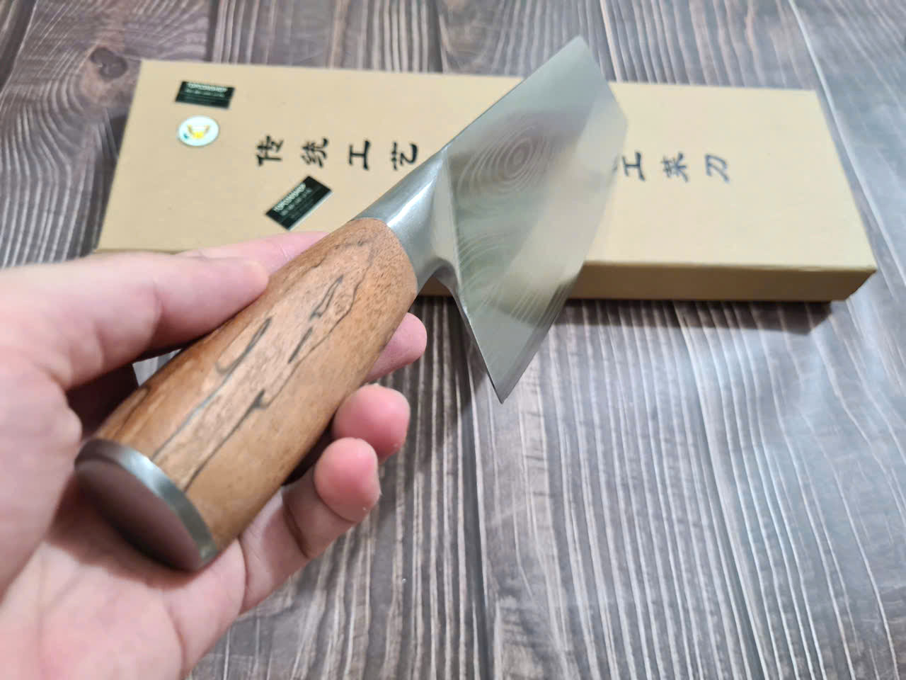 Dao Phúc Sen - Dao Chặt Gà Cán Ốp Nu Nghiến G05OCD - Kích thước: lưỡi: 23cm, cán: 13cm, rộng: 8,5cm-9cm, dầy: 0,3, trọng lượng: 500g - 600g - Chức năng: sử dụng chuyên chặt