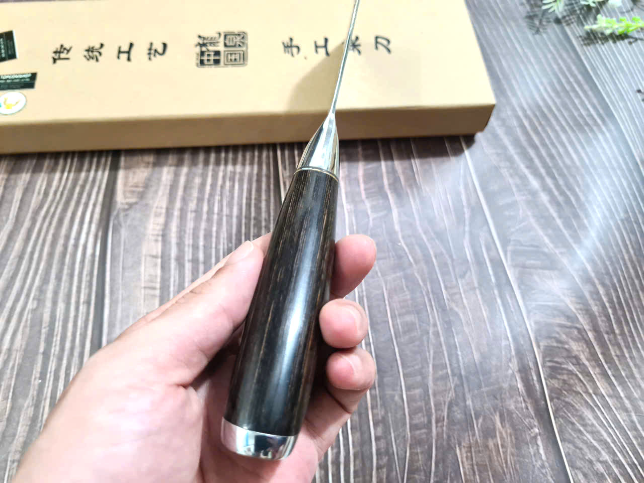 - Chức năng: chuyên lọc - thái cá thịt, rau củ. - Kích thước: Lưỡi: 21cm, cán: 12cm, rộng: 5cm, dầy: 2ly, trọng lượng: 200g - Cán : Gỗ mun , Khâu và chốt đồng