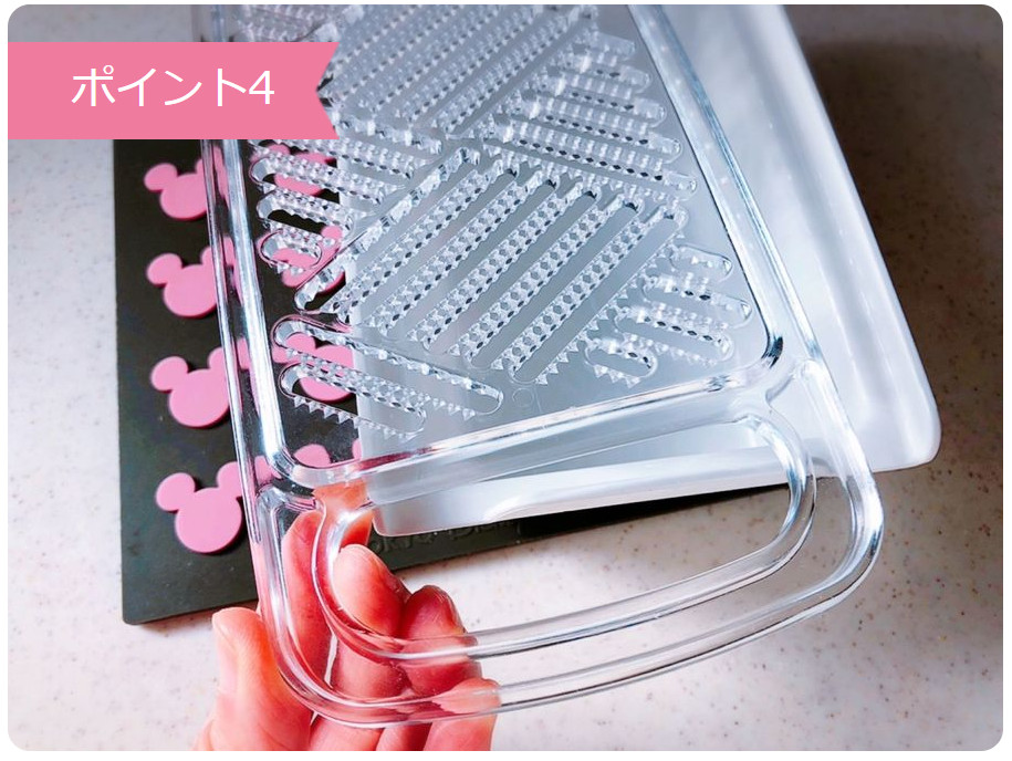 • Đặt dụng cụ tại vị trí có mặt phẳng sau đó một tay giữ dụng cụ, một tay còn lại đưa rau/củ/trái cây cần bào thành sợi lên và nhẹ nhàng mài theo nhu cầu sử dụng.