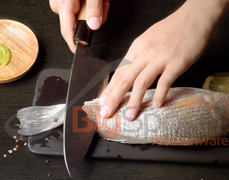 • Chất liệu: Thép không rỉ sắc bén, kết hợp cán bằng gỗ an toàn dễ thao tác