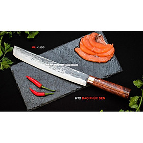 Dao Phúc Sen bản Takohiki - Kích thước: lưỡi: 24cm, cán: 12cm, rộng: 3.5cm, dầy: 2.5 ly, trọng lượng: 200g - Chức năng: sử dụng chuyên thái thịt ,cá, rau củ và các thực phẩm
