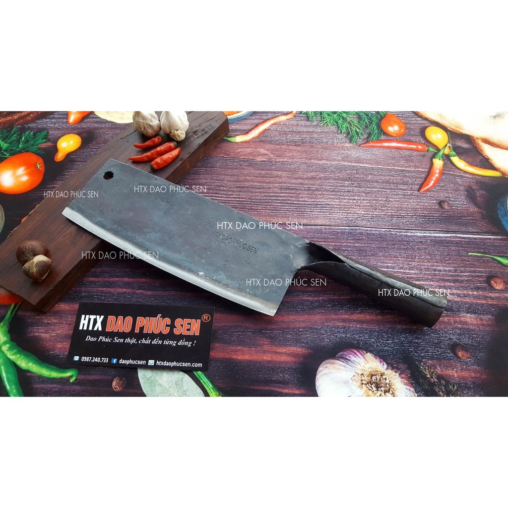 Dao Phúc Sen - Dao Chặt Xương Mới - Chức năng: Chặt xương ống, chân giò, trâu bò - Kích thước: Lưỡi: 22cm, cán: 12cm, rộng: 11cm, dầy: 4ly, trọng lượng: 800g + 100% nguyên