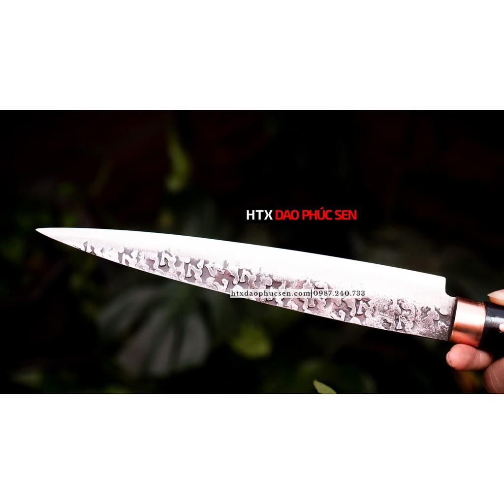 Dao Phúc Sen bản Takohiki - Kích thước: lưỡi: 24cm, cán: 12cm, rộng: 3.5cm, dầy: 2.5 ly, trọng lượng: 200g - Chức năng: sử dụng chuyên thái thịt ,cá, rau củ và các thực phẩm