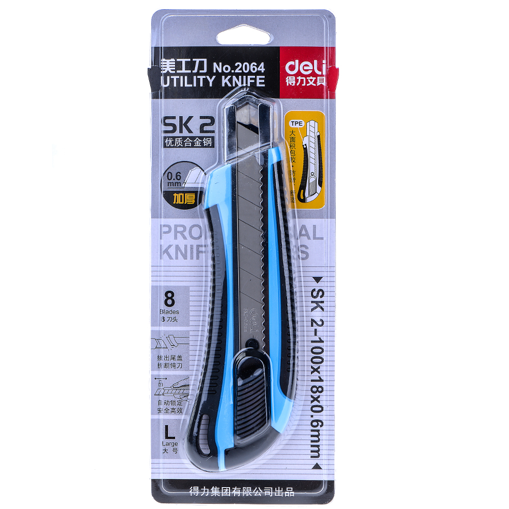 Dao Rọc Giấy Deli 2064 Lưu ý: Sản phẩm được giao màu ngẫu nhiên tùy theo từng đợt nhập hàng. Dao Rọc Giấy Deli 2064 thiết kế tay cầm cong có rãnh chống trượt giúp