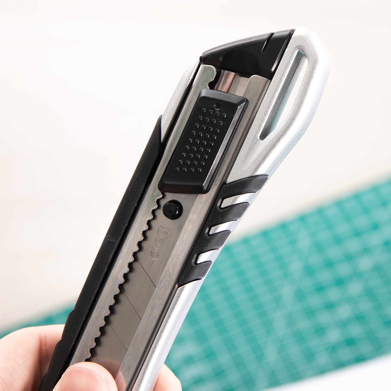 Dao Rọc Giấy Deli 2064 có dưỡi dao được chế tác tinh xảo từ chất liệu hợp kim thép cao cấp cho bạn yên tâm sử dụng lâu dài mà không sợ gỉ sét. Dao có