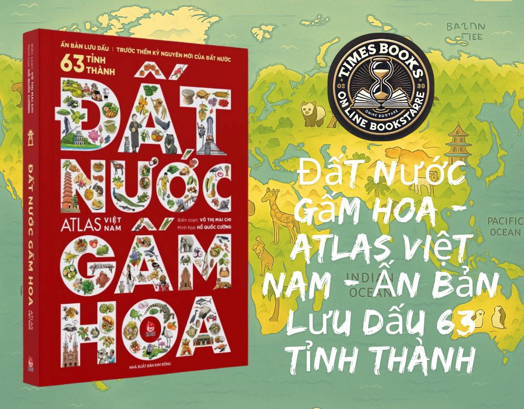 Sách - Đất Nước Gấm Hoa - Atlas Việt Nam - Ấn Bản Lưu Dấu 63 Tỉnh Thành - Kim Đồng   Ấn bản lưu dấu lịch sử – Hành trình khám phá 63 tỉnh thành cho mọi lứa tuổi!   NXB Kim Đồng | Bìa cứng khổ lớn | Tặng kèm bản đồ Việt Nam minh họa tuyệt đẹp   Mỗi trang sách – một lát cắt rực rỡ của đất nước Việt Nam tươi đẹp   Bạn đang tìm một cuốn sách có thể vừa học – vừa chiêm ngưỡng – vừa lưu giữ giá trị văn hóa Việt?   "Đất nước gấm hoa" chính là atlas đặc biệt, đưa người đọc mọi lứa tuổi bước vào hành trình khám phá Việt Nam từ Bắc chí Nam – từ núi rừng Tây Bắc, đồng bằng Bắc Bộ, miền Trung nắng gió, Tây Nguyên hùng vĩ cho đến miền Tây sông nước và các quần đảo xa xôi.   Dù bạn là học sinh đang học Địa lý – Lịch sử, phụ huynh tìm sách cho con, hay người lớn yêu đất nước và muốn truyền cảm hứng cho thế hệ trẻ – cuốn sách này đều xứng đáng có trong tủ sách gia đình.   Điểm nổi bật:   Dành cho mọi lứa tuổi – từ trẻ em đến người lớn đều dễ đọc, dễ cảm, dễ nhớ.   Lưu dấu khoảnh khắc lịch sử của 63 tỉnh thành trước khi thực hiện việc sắp xếp hành chính theo Nghị quyết 202/2025/QH15.   Hình ảnh minh họa đẹp – sống động do họa sĩ Hồ Quốc Cường thể hiện, đầy màu sắc và cảm hứng.   Văn phong nhẹ nhàng, dễ hiểu, giàu cảm xúc từ tác giả Võ Thị Mai Chi – từng đoạt giải thưởng Hội Nhà văn Việt Nam.   Tặng kèm bản đồ Việt Nam khổ lớn với các biểu tượng đặc trưng từng địa phương – học mà chơi, chơi mà học.   Khổ sách lớn – bìa cứng sang trọng, thích hợp làm quà tặng, trang trí hoặc tài liệu giáo dục.   Thông tin chi tiết:   Kích thước: 24.5 x 30.5 cm   Số trang: 168 trang in màu chất lượng cao   Trọng lượng: 1.165 gram   Năm xuất bản: 2025   Tác giả: Võ Thị Mai Chi & Hồ Quốc Cường   Nhà xuất bản: Kim Đồng   Giá bìa: 350.000đ   ISBN: 978-604-2-25600-1   Phù hợp với: Học sinh – sinh viên cần hiểu hơn về quê hương đất nước Phụ huynh muốn giáo dục lòng yêu nước, văn hóa dân tộc cho con Giáo viên, nhà trường, thư viện cần tài liệu sinh động Người lớn yêu văn hóa, thích lưu giữ ký ức về 63 tỉnh thành trước bước ngoặt lịch sử “Đất nước gấm hoa” không chỉ là sách – mà là món quà tinh thần dành cho mọi thế hệ Việt Nam. Hãy để mỗi trang sách là một hành trình, mỗi hình ảnh là một xúc cảm về đất nước hình chữ S thân thương!