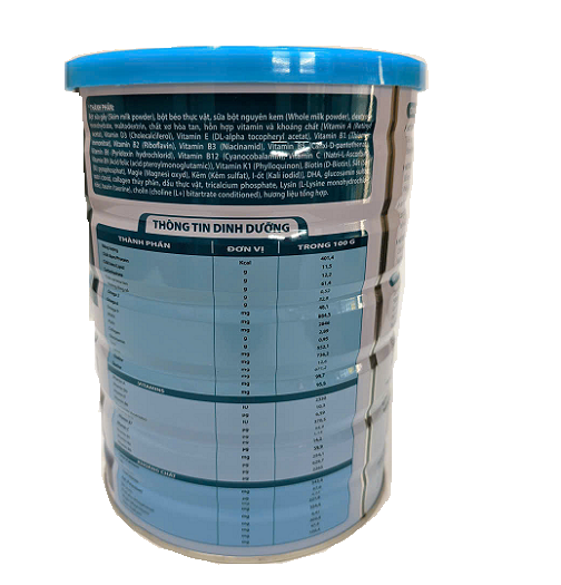 1. Thành phần: Sữa bột, Whey protein, Soy protein, Maltodextrin, Sữa non, L-Lysine HCL, FOS, Canxi Nano, Taurine, Choline, DHA, ARA, Vitamin (Vitamin A, Vitamin C, Vitamin D, Vitamin E, Vitamin D3, Vitamin K2,