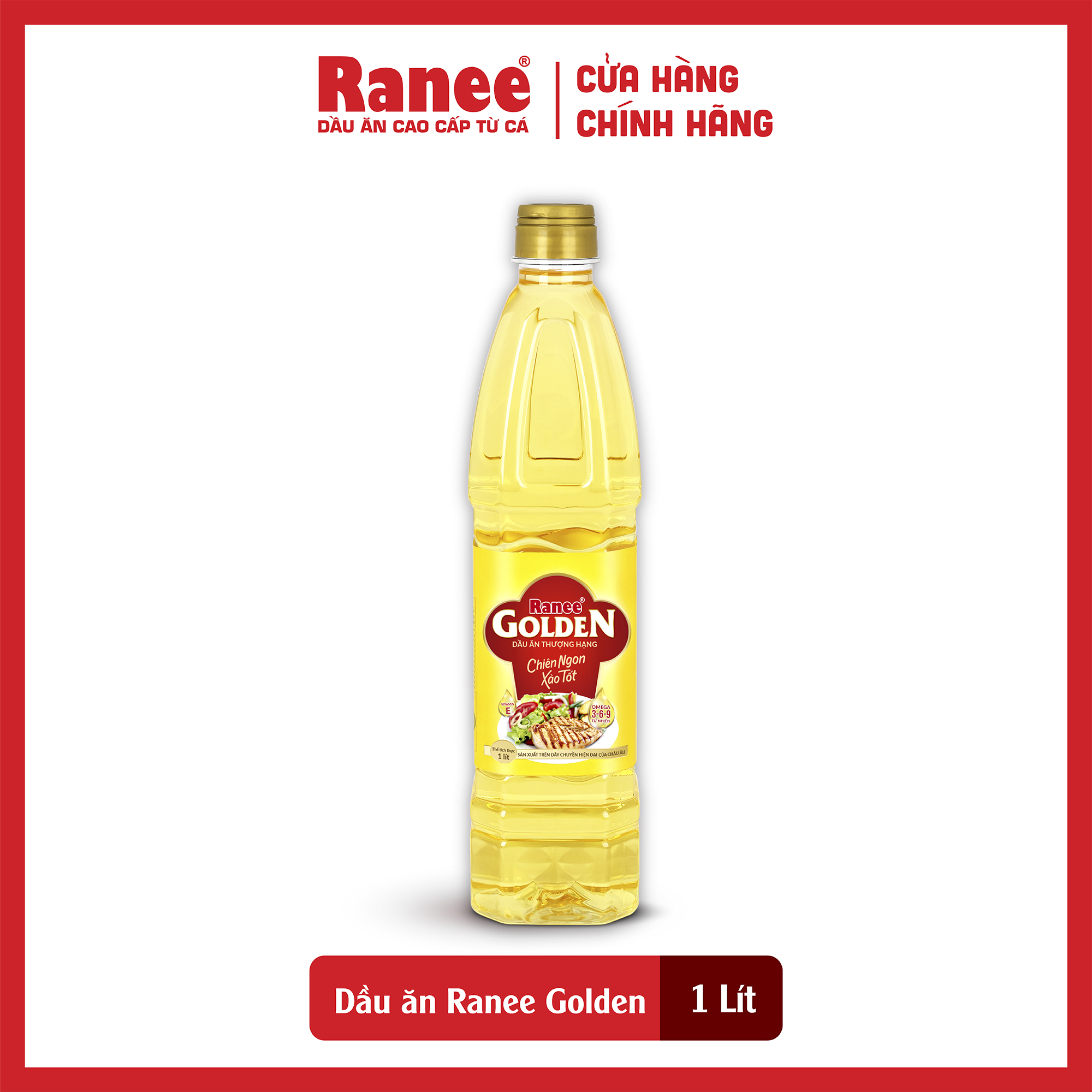 Dầu ăn thượng hạng Ranee Golden CHIÊN NGON XÀO TỐT Thành phần: + Dầu cá tinh luyện và dầu nành tinh luyện + Omega 3-6-9 và