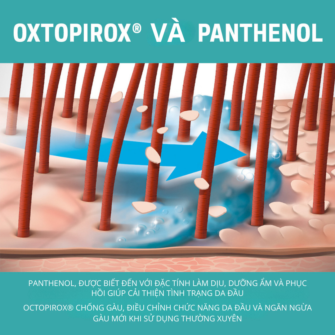 Thành phần chứa Tri-Vitamin hoạt động kép để làm sạch sâu & phòng chống gàu quay lại