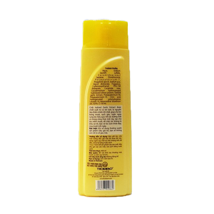 Dầu gội xả tỏi Thorakao ngăn rụng tóc, giảm gàu 400ml – Được chiết xuất từ củ tỏi tươi thiên nhiên, giúp tóc sạch gàu. Với các dưỡng chất trong dầu gội Tỏi Thorakao mới này, tạo cho